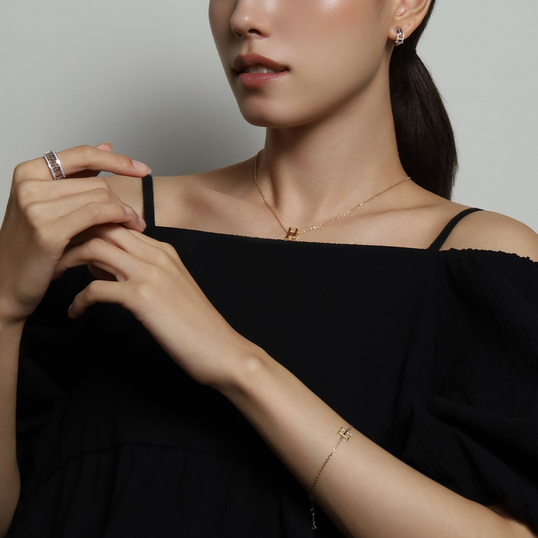 シンプルなデザインでありながら、“H”モチーフのフォルムや厚み、ストーンの配置までバランスを追求し、誰でも着けやすいようなデザインに仕上げました。