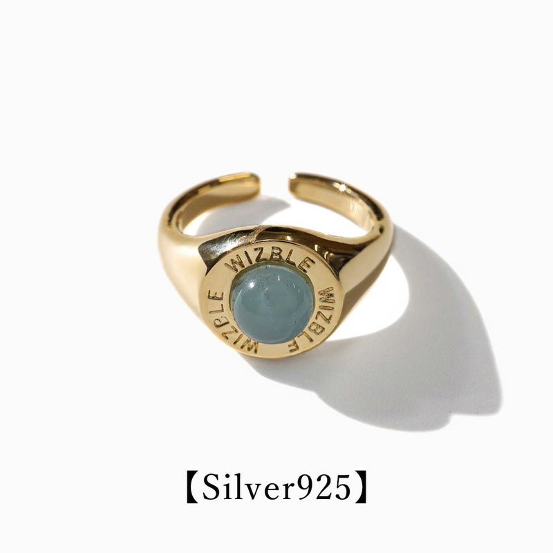 College Pinky Ring Aquamarine【Silver925】(Gold)
