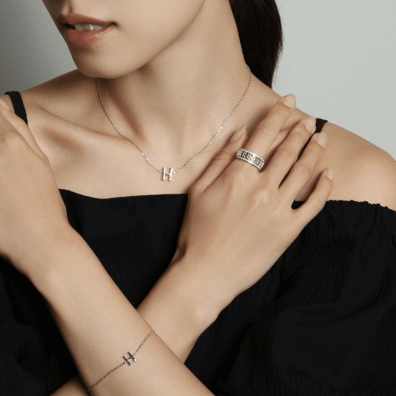 ラグジュアリーなフォルムと立体的なフォルムのHモチーフブレスレット。