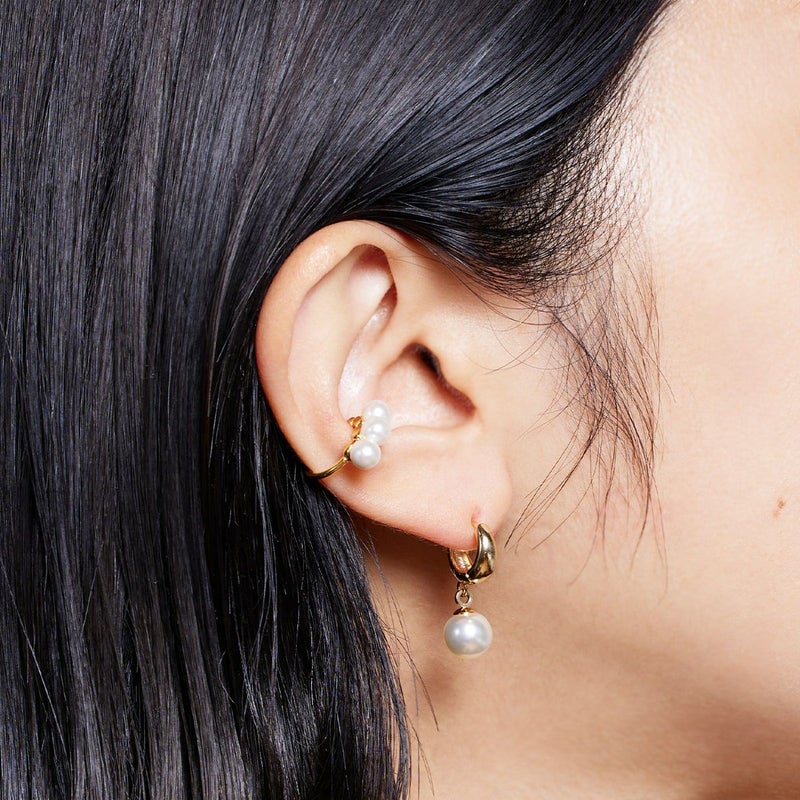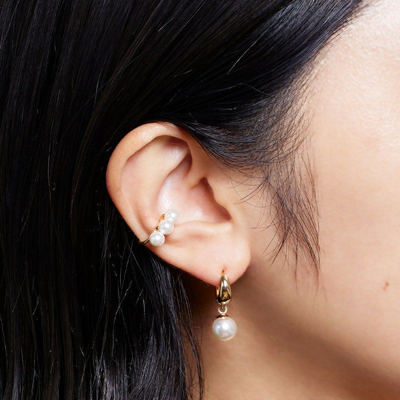 小粒のパールがさりげなく艶めき、耳元を上品に仕上げてくれるイヤーカフ。