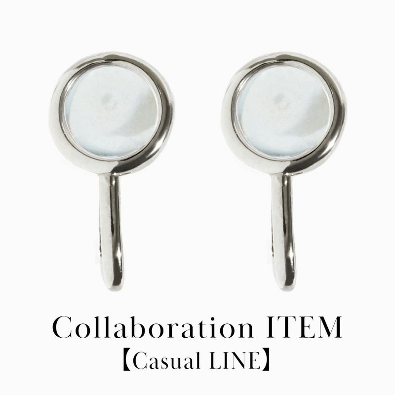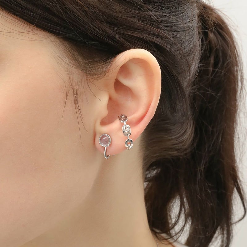 他のイヤリングやイヤーカフとのレイヤードスタイルもお楽しみ頂きやすいデザインです。