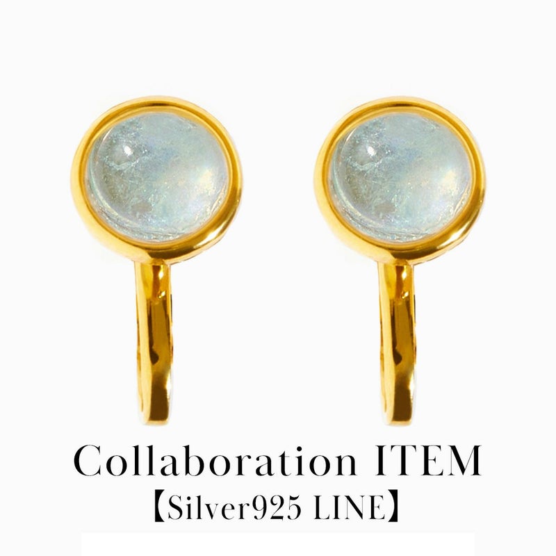 AQUAMARINE Stud Earrings【Silver925 LINE】(Gold)