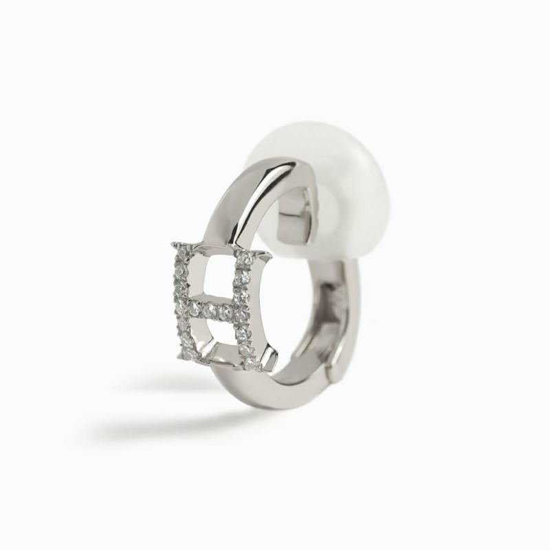 ラグジュアリーなフォルムと立体的なフォルムのHモチーフのフープイヤークリップ。