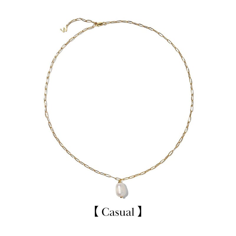 パールが輝くシンプルチェーンネックレス。