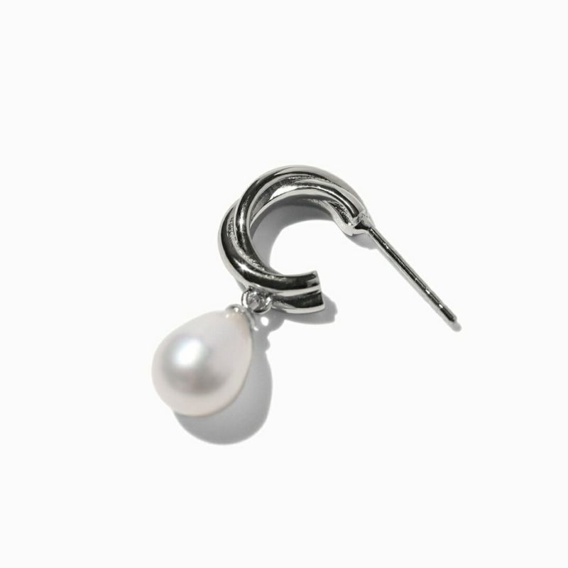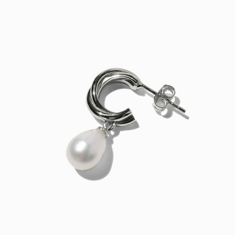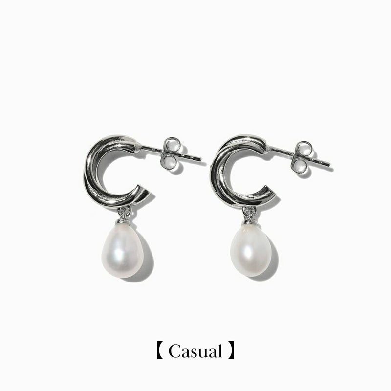 Twist Hoop Pearl Pierce 【Casual】(Silver)