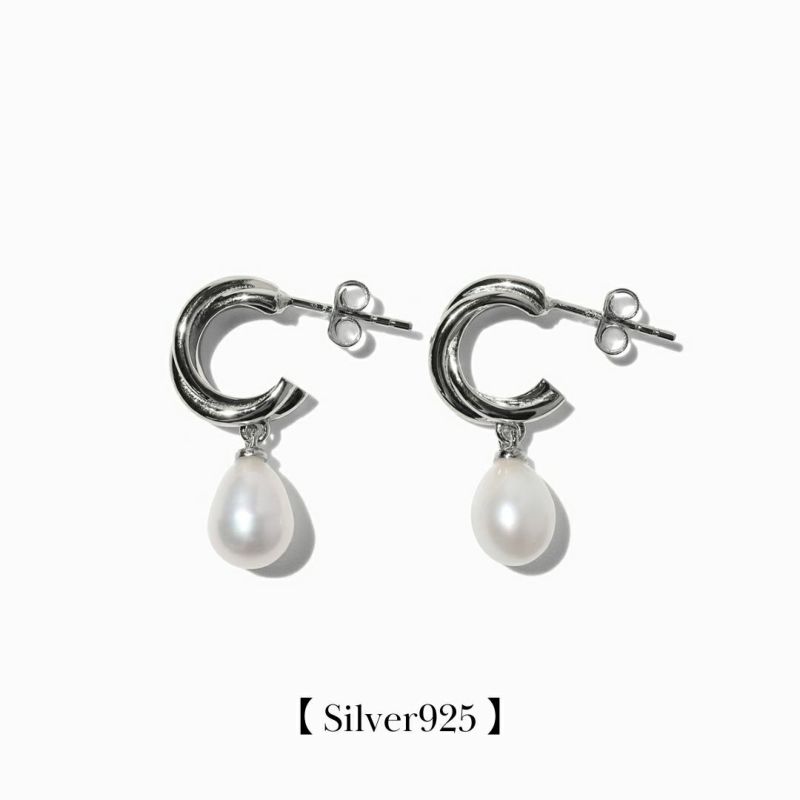 Twist Hoop Pearl Pierce【Silver925】(Silver)
