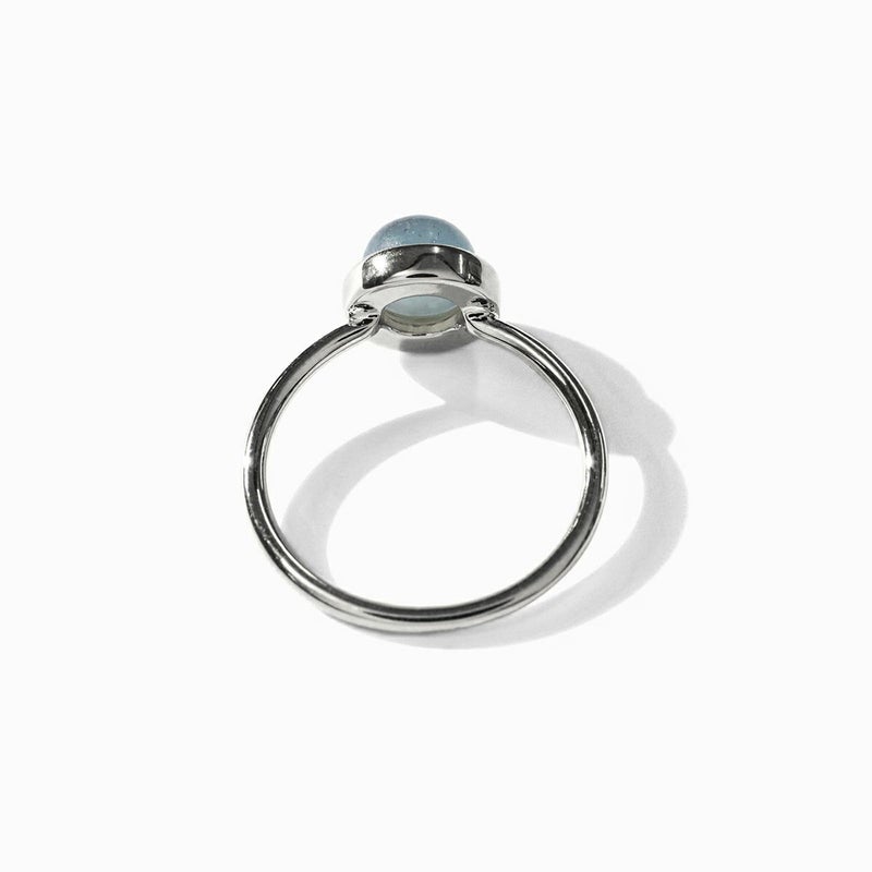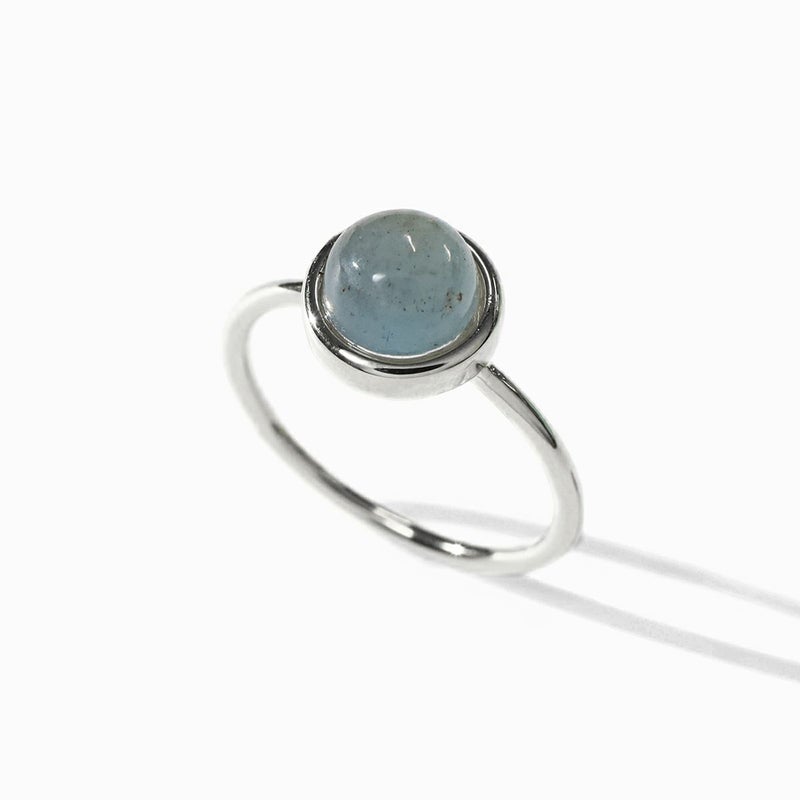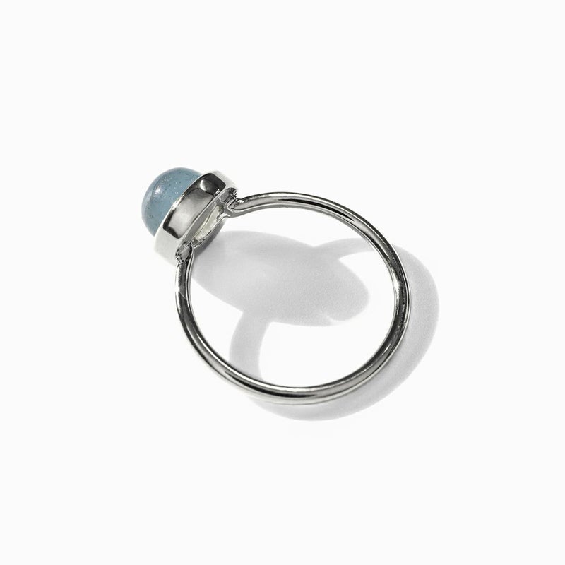 つるんとした質感と、ぷっくり丸みのあるボリューミーなアクアマリンがポイント。