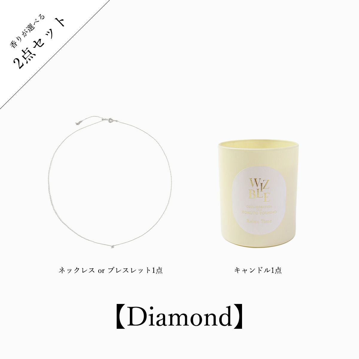 他の画像を見る 【2 Item Set】Fragrance Candle +Skin Jewelry Diamond Bracelet or Necklace【Diamond / Silver925】 ¥ 19,800 → ¥ 9,900 税込 販売期間 〜 2026/03/01 23:59 詳細を見る お気に入りに登録する