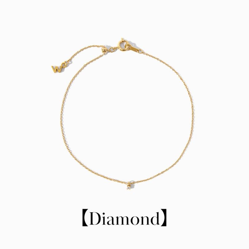 永遠の輝きと言われる天然ダイヤモンドをセッティングした1粒のストーンが煌めくブレスレット。