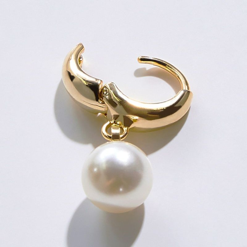 耳たぶに沿うほどの小さなフープのサイズ感、動くたびに揺れるパール、キャッチレスの着けやすさなど