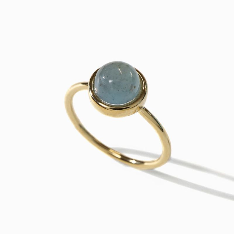 つるんとした質感と、ぷっくり丸みのあるボリューミーなアクアマリンがポイント。