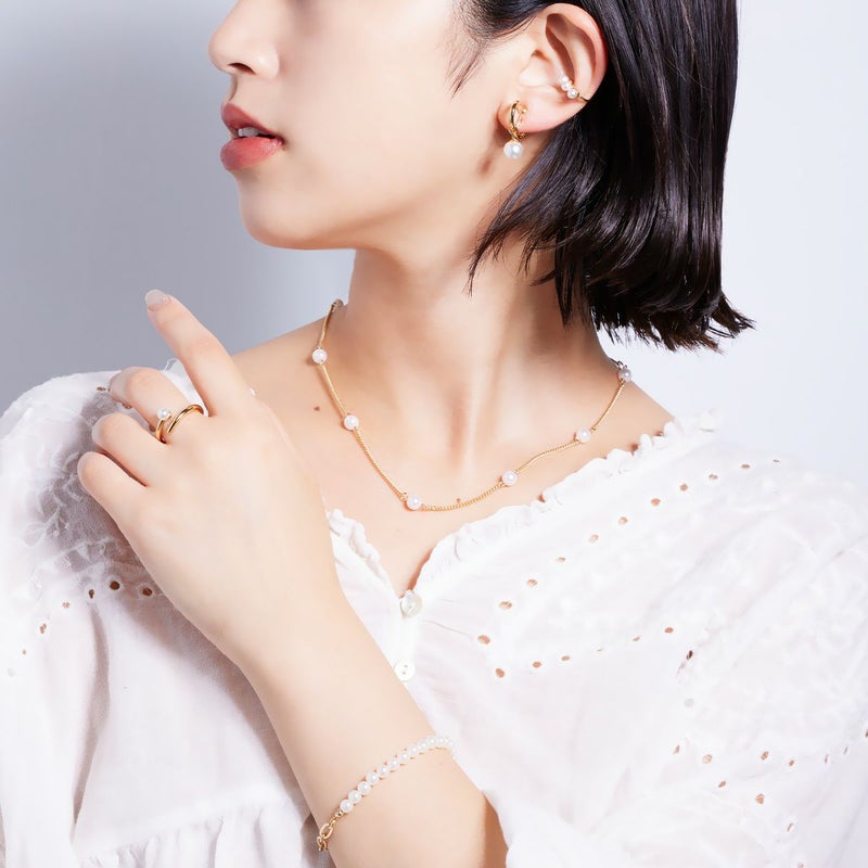 飾り気を減らしながらもパールをセッティングすることでほどよい存在感を出したところがポイント。