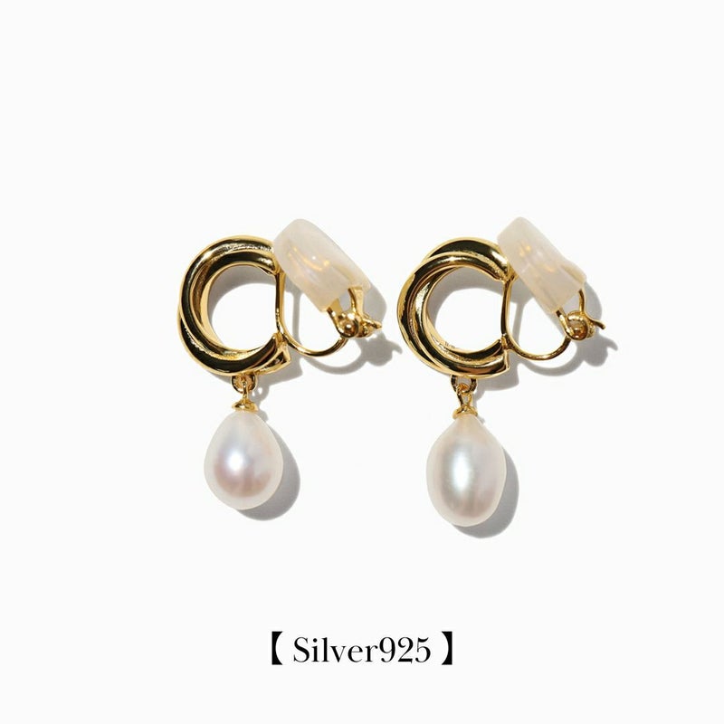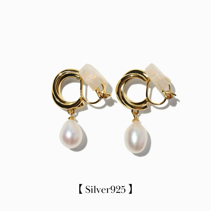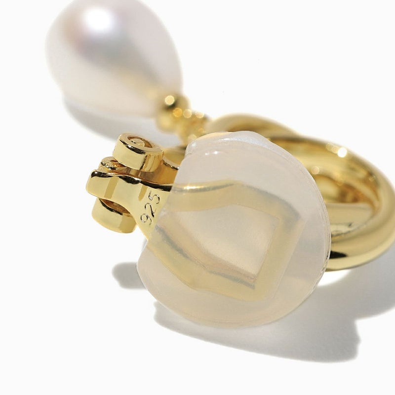 Twist Hoop Pearl Earrings【Silver925】(Gold)