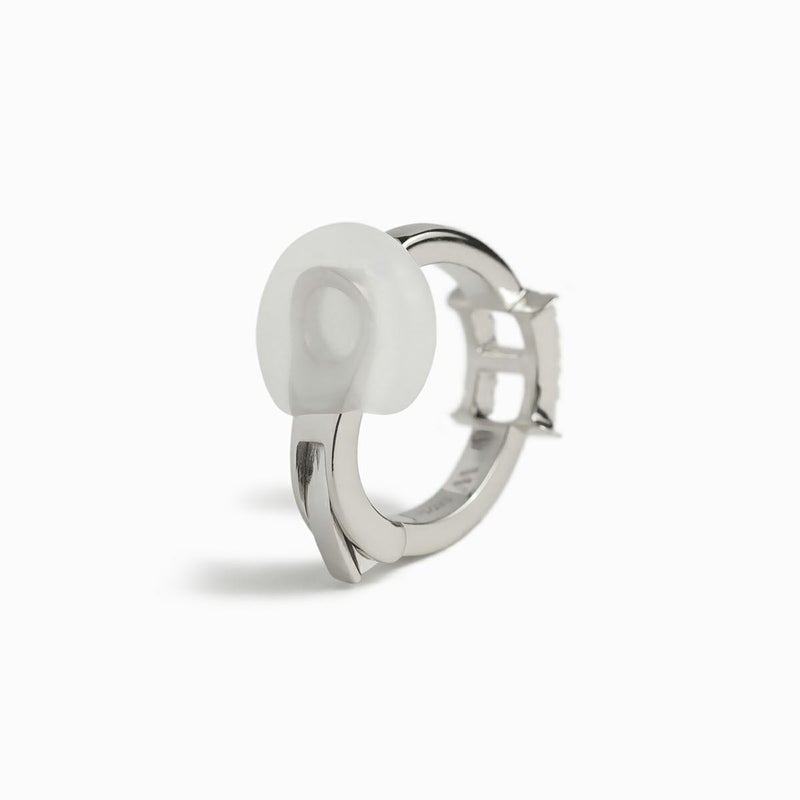 ラグジュアリーなフォルムと立体的なフォルムのHモチーフのフープイヤークリップ。