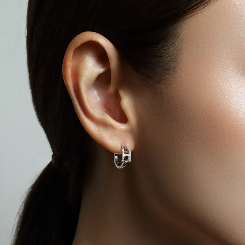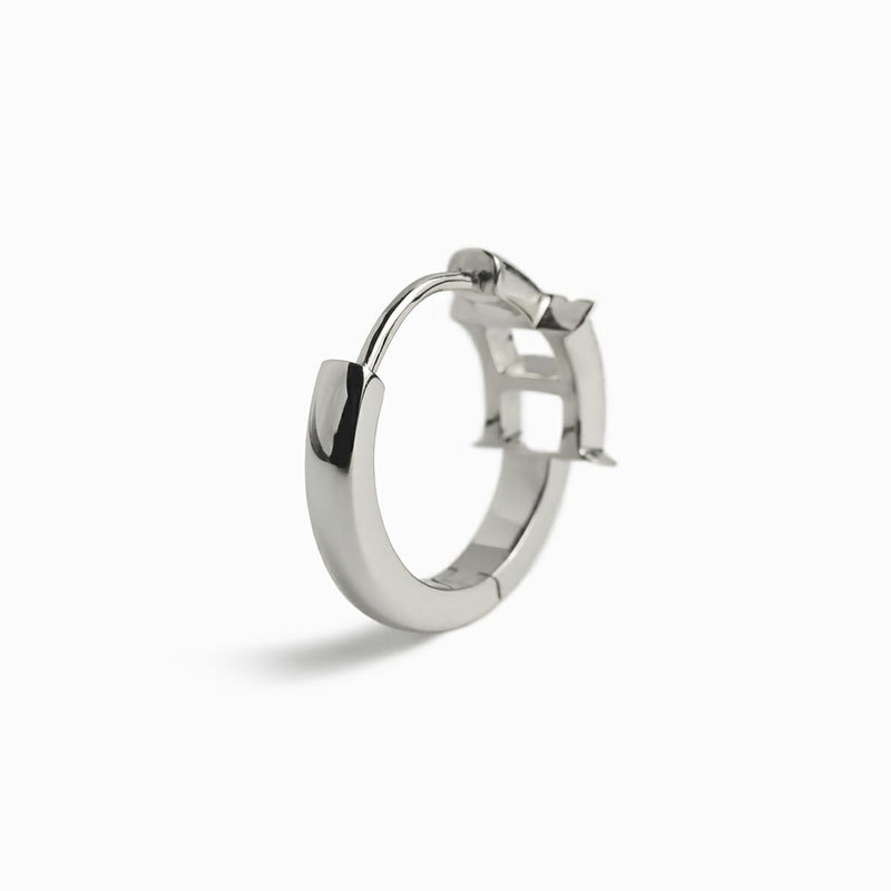 ラグジュアリーなフォルムと立体的なフォルムのHモチーフのフープピアス。